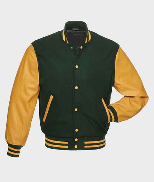 Stand out in bold style with our Men’s Green and Yellow Varsity Jacket — now available for sale. This eye-catching jacket features a vibrant green body with bright yellow sleeves, bringing classic varsity flair with a modern twist. Made from high-quality materials for durability and comfort, it includes ribbed knit cuffs, collar, and hem for a snug fit. The snap-button closure and functional pockets make it as practical as it is stylish. Whether you're repping your team or upgrading your streetwear, this jacket makes a confident statement.
