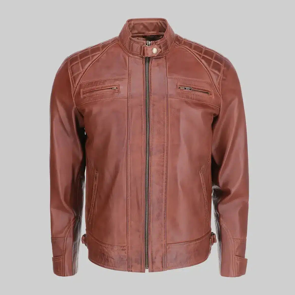 Men’s Brown Quilted Motorcycle Leather Jacket