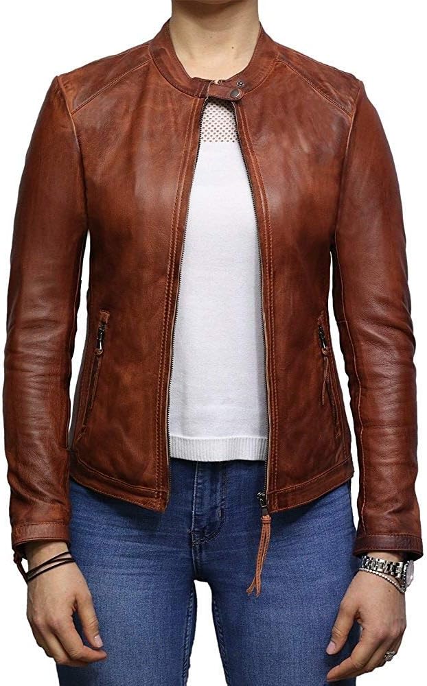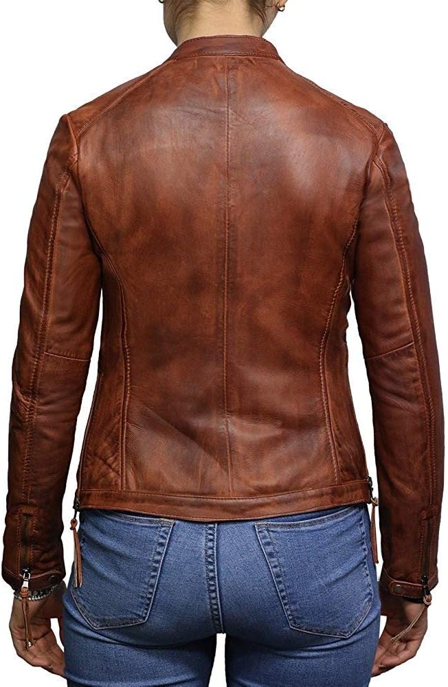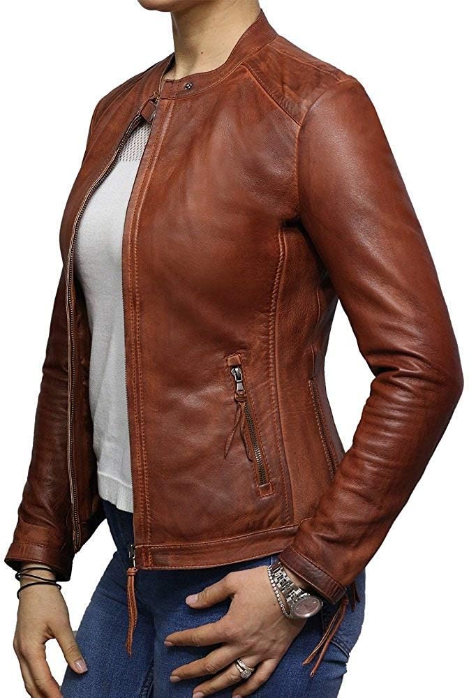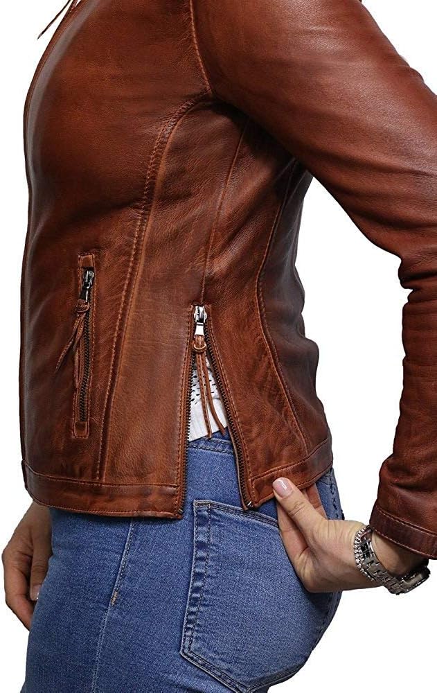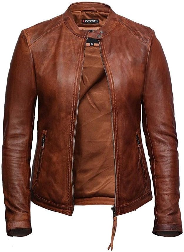 Womens Genuine Leather Biker Jacket Lambskin Vintage