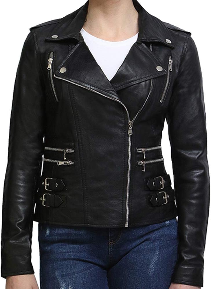 Womens Genuine Leather Bikers Jacket Slim Fit