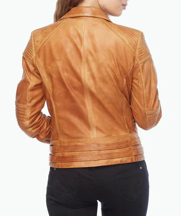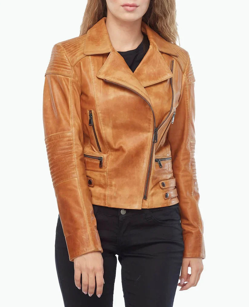 Womens Motorcycle Tan Brown Lambskin Leather Jacket